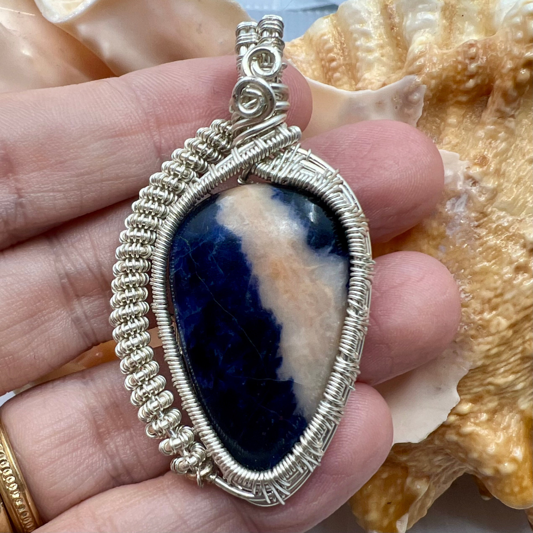 Sunset Sodalite, her vessel, is known as the stone of clarity and vitality. Its fiery orange strengthens confidence and endurance, while its deep blue calms nerves and opens the voice. It supports the throat and solar plexus, aiding expression, digestion, and the steady rhythm of breath. Spiritually, it awakens intuition, aligning thought and word with truth.